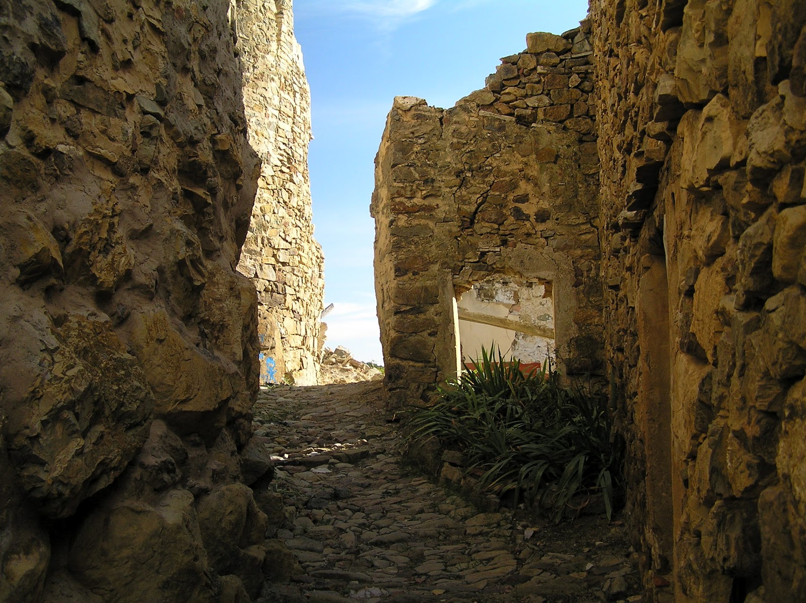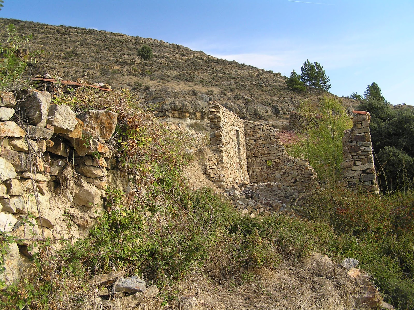 Pedro, también despoblado. Pasado éste, las curvas se acentúan, hendiendo la ladera al salvar cada barranco, hasta que, pasado un regato, se divisan las primeras construcciones ruinosas de Armejún: