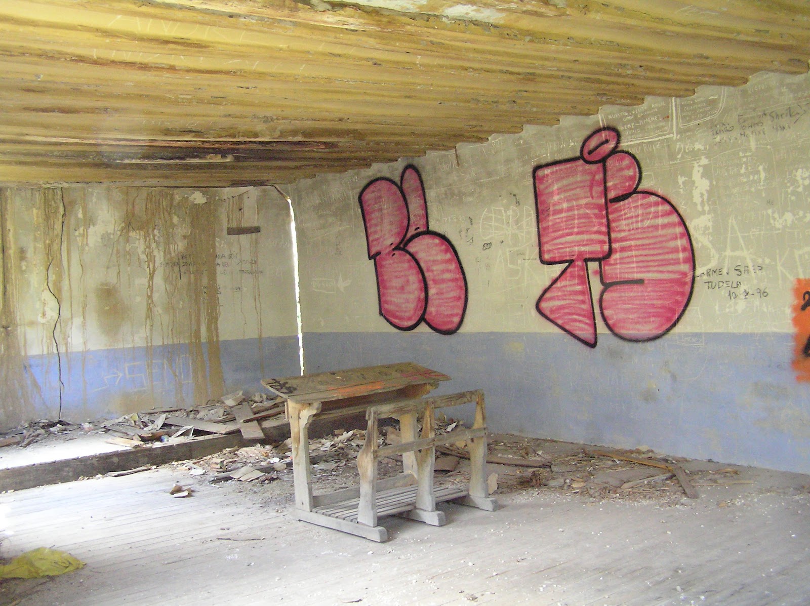 La escuela del pueblo aún alberga un maltrecho pupitre: