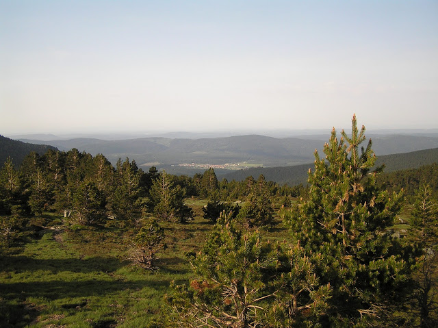 Volviendo la vista atrás, nos encontramos con el pueblo que acabamos de dejar, Duruelo de la Sierra, totalmente rodeado de sus densos y conocidos pinares de pino albar.
