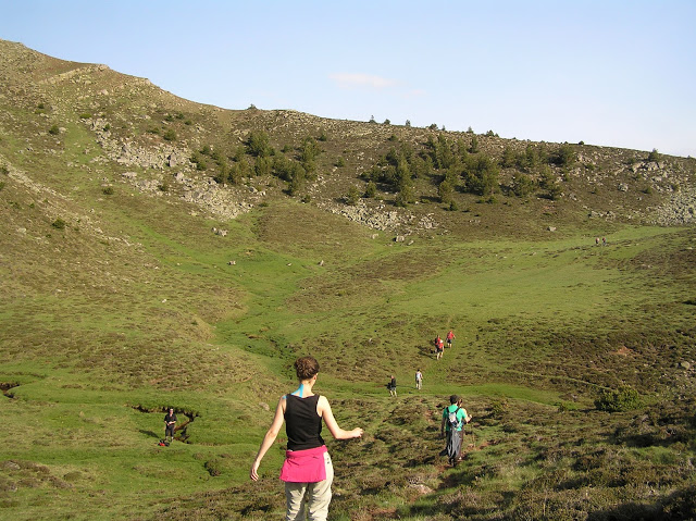 Seguimos marcha por el valle, cada vez de un verde más intenso, a medida que aparecen claros y praderas salpicados entre las escobas y majuelos,