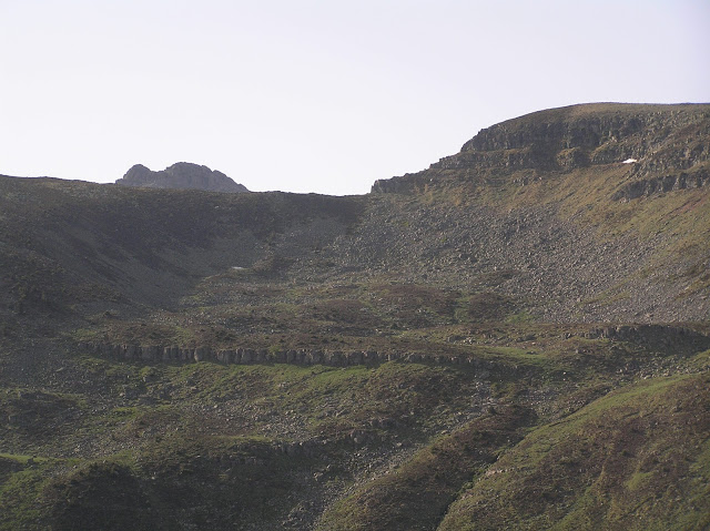 A nuestra espalda, a la izquierda, aparece en segundo plano la cima rocosa del Urbión, destacando sobre un imponente circo glaciar (en primer término).