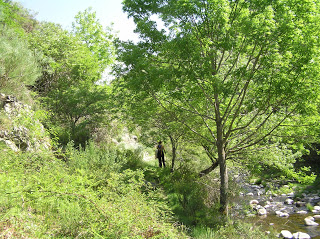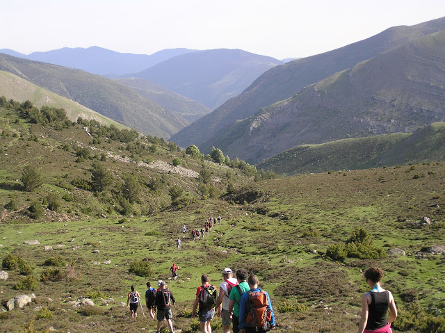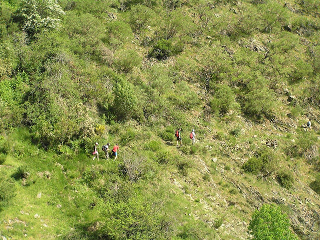 La senda es estrecha, y nos obliga a ir en fila india, enganchándonos a veces en las ramas de las zarzas.