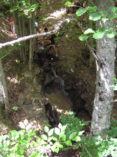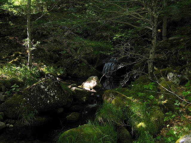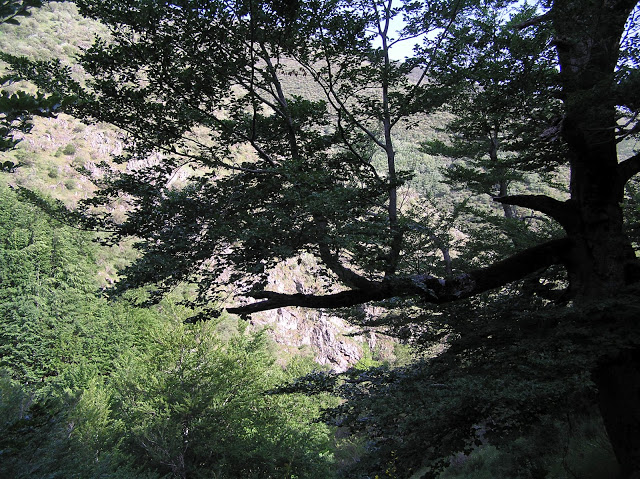 Y nos sumergimos en el fresco hayedo, por donde el río corre y se divide a veces en ramales, formando pequeños saltos entre las rocas.