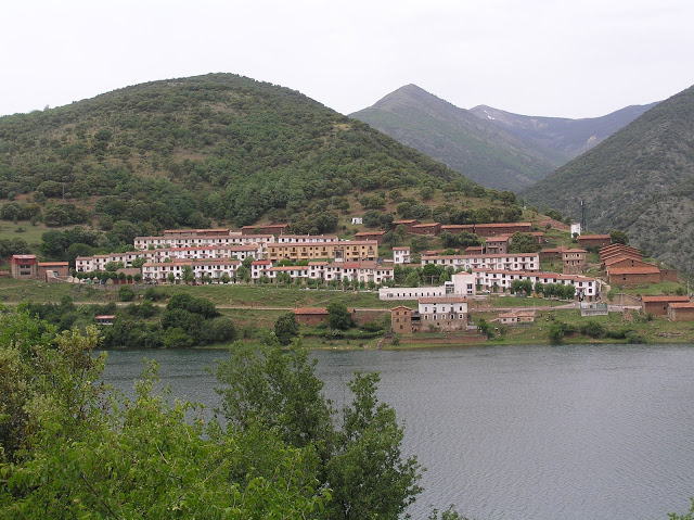 Y, finalmente, el pueblo nuevo de Mansilla de la Sierra, objetivo de la ruta, si bien aún nos restaba bordear unos pocos kilómetros de pantano bajo el sol para ganar el casco. El antiguo Mansilla quedó sumergido bajo las aguas del embalse, que recoge aguas de multitud de ríos de montaña en esta cabecera, para dar salida al río Najerilla.